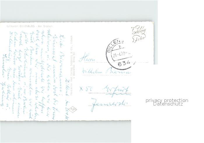 72198871 alte Postkarte Dillenburg Partie am Graben Wilhelmsturm postalisch gelaufen Erhaltung siehe scans KatCode: 11110006532006