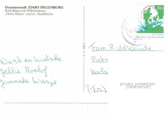 72772429 alte Postkarte Dillenburg Schlossberg mit Wilhelmsturm Hohe Mauer und ev Stadtkirche postalisch gelaufen Erhaltung siehe scans [WerneD78] KatCode: 11110006532006