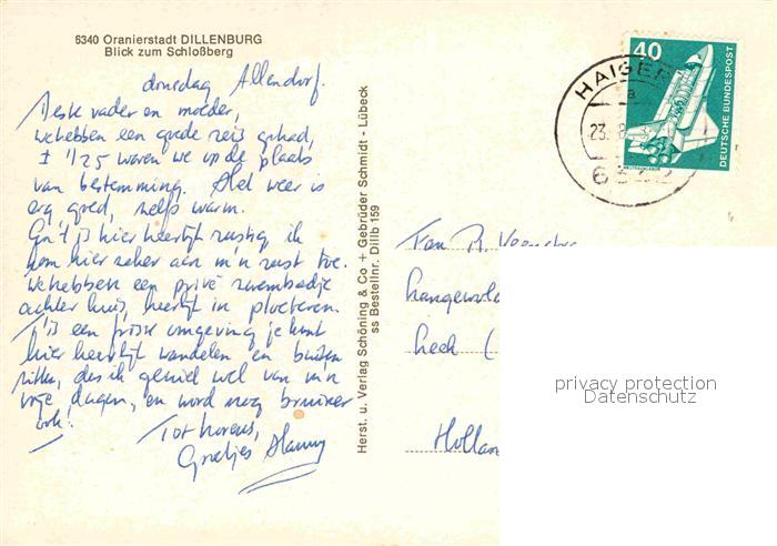 72914949 alte Postkarte Dillenburg Stadtbild mit Schlossberg Oranierstadt postalisch gelaufen Erhaltung siehe scans [FriedD77] KatCode: 11110006532006