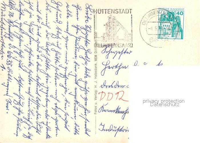 73271652 alte Postkarte Dillingen Saar Stadthalle Rathaus Sporthalle West Odilienplatz Saardom postalisch gelaufen Erhaltung siehe scans [KathaD81] KatCode: 11110010044111