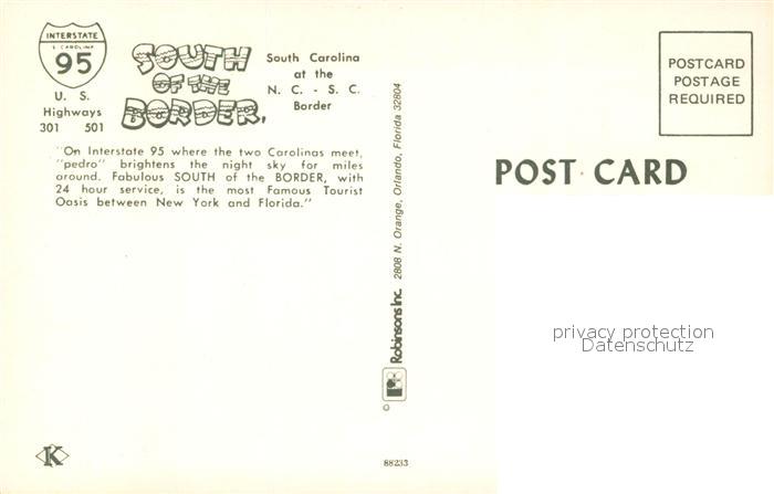 73130318 Dillon South Carolina South of the Border postalisch nicht gelaufen Erhaltung siehe scans [NatalD47] KatCode: 14140430000000