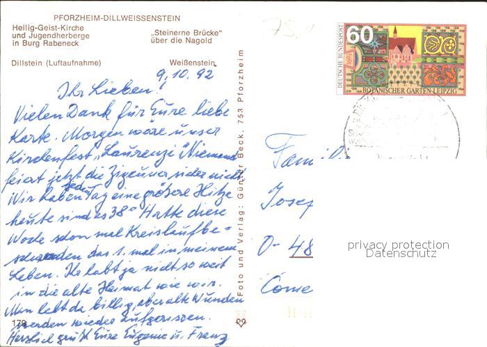 71947367 alte Postkarte Dillweissenstein Heilig Geist Kirche Jugendherberge Steinerne Bruecke Nagold Burg Rabeneck postalisch gelaufen Erhaltung siehe scans KatCode: 11110008231000