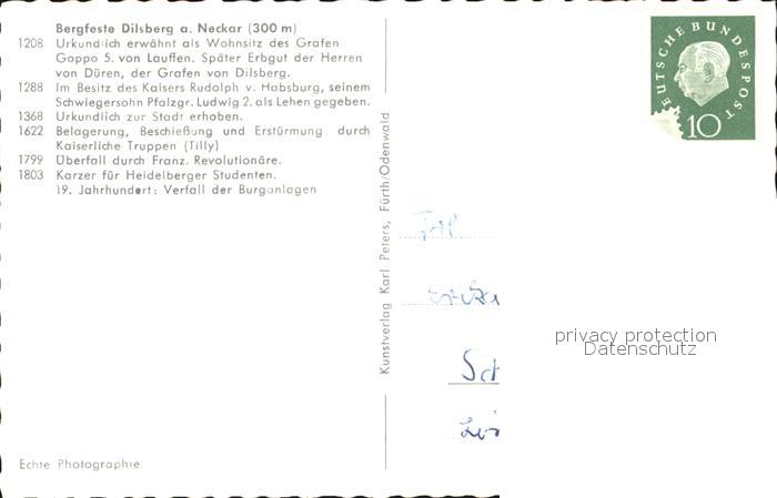 72595736 Dilsberg Bergfeste Neckartal Rainbach Burgruine Geschichte postalisch nicht gelaufen Erhaltung siehe scans [FriedD77] KatCode: 11110008226056