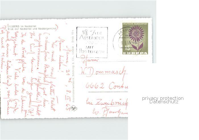 72145936 alte Postkarte Dilsberg mit Neckartal und Neckargemuend postalisch gelaufen Erhaltung siehe scans KatCode: 11110008226056