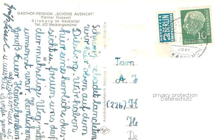 73777938 alte Postkarte Dilsberg Panorama Burgruine Stollen Jugendherberge postalisch gelaufen Erhaltung siehe scans [FriedD77] KatCode: 11110008226056