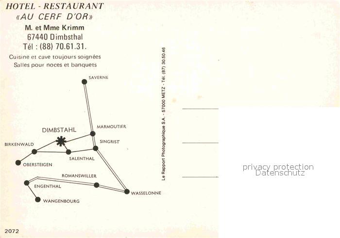 12820493 Dimbsthal Hotel Restaurant Au Cerf d Or Kirchturm Fliegeraufnahme postalisch nicht gelaufen Erhaltung siehe scans [FriedD77] KatCode: 11170067467096