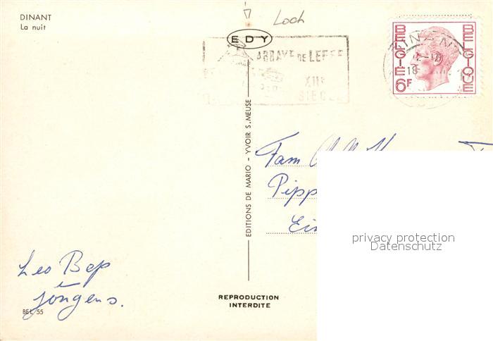 72926981 carte postale Dinant Wallonie postalisch gelaufen Erhaltung siehe scans [NatalD47] KatCode: 11070091000132