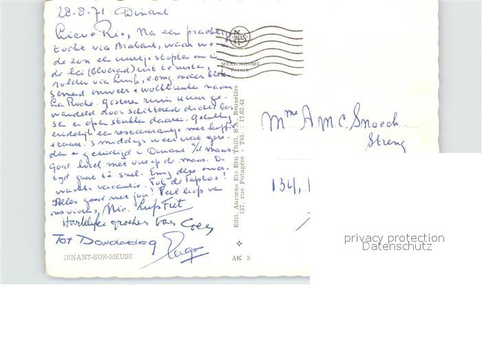 72582144 carte postale Dinant Wallonie Bords de la Meuse postalisch gelaufen Erhaltung siehe scans [FriedD77] KatCode: 11070091000132