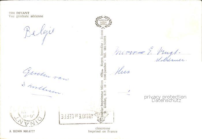 72458362 carte postale Dinant Wallonie Fliegeraufnahme postalisch gelaufen Erhaltung siehe scans KatCode: 11070091000132