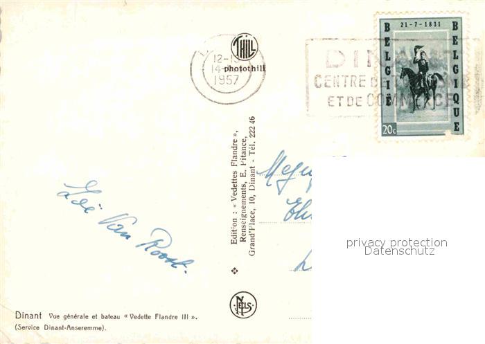 72900054 carte postale Dinant Wallonie Gesamtansicht Vedette Flandre postalisch gelaufen Erhaltung siehe scans [AndreD76] KatCode: 11070091000132