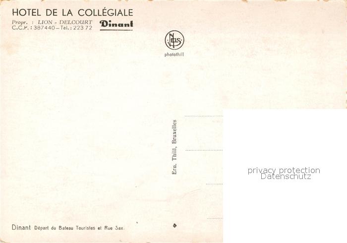 43500857 Dinant Wallonie Hotel de la Collegiale postalisch nicht gelaufen Erhaltung siehe scans [WerneD78] KatCode: 11070091000132