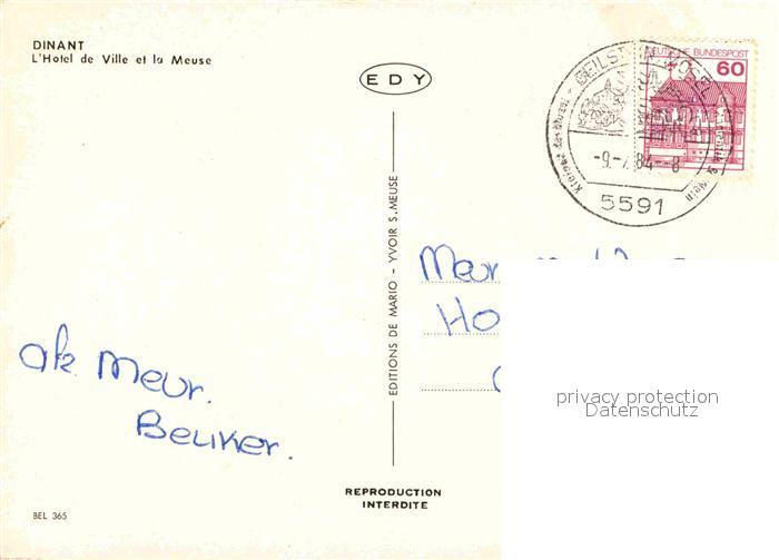 72912160 carte postale Dinant Wallonie Hotel de Ville et la Meuse postalisch gelaufen Erhaltung siehe scans [LiesaD40] KatCode: 11070091000132