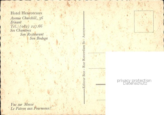 12342709 Dinant Wallonie Hotel Henroteaux postalisch nicht gelaufen Erhaltung siehe scans KatCode: 11070091000132