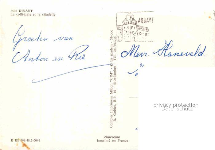 72908301 carte postale Dinant Wallonie La Collegiale et la Citadelle postalisch gelaufen Erhaltung siehe scans [LiesaD40] KatCode: 11070091000132