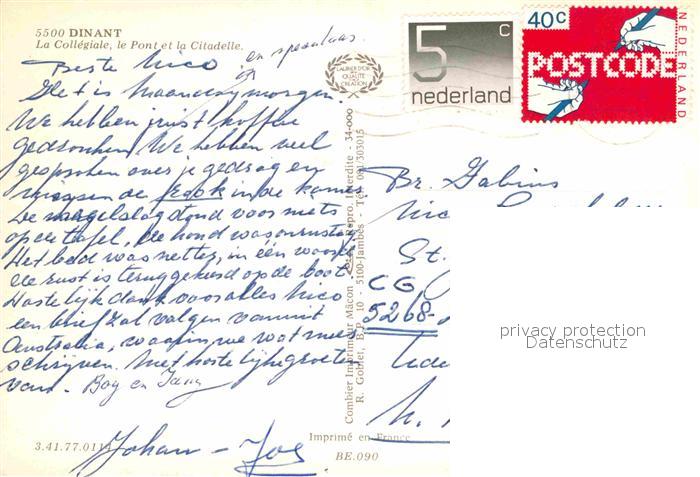 72661465 carte postale Dinant Wallonie Zitadelle postalisch gelaufen Erhaltung siehe scans [AndreD76] KatCode: 11070091000132