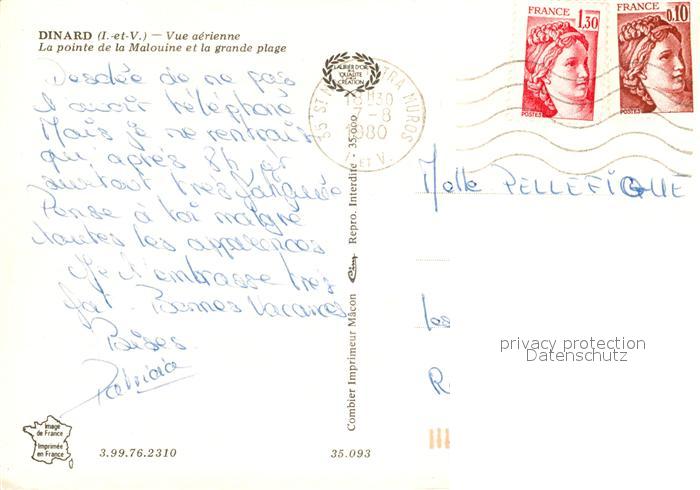 13519518 carte postale Dinard 35 Fliegeraufnahme pointe Malouine grande plage postalisch gelaufen Erhaltung siehe scans [KathaD81] KatCode: 11170035435093
