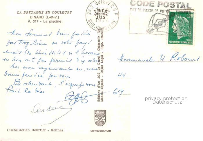 12864075 carte postale Dinard 35 La piscine Vue aerienne postalisch gelaufen Erhaltung siehe scans [WerneD78] KatCode: 11170035435093