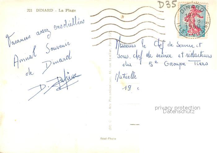 13580930 carte postale Dinard 35 La Plage postalisch gelaufen Erhaltung siehe scans [WerneD78] KatCode: 11170035435093