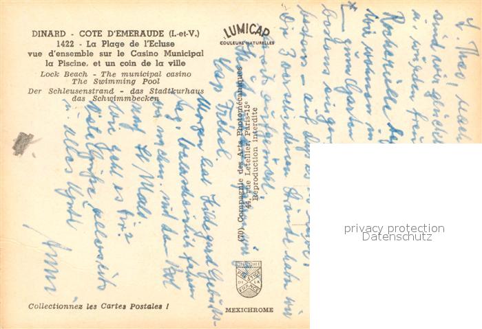 13607117 Dinard 35 La Plage de l’Ecluse vue d’ensemble sur le Casino Municipal postalisch nicht gelaufen Erhaltung siehe scans [WerneD78] KatCode: 11170035435093