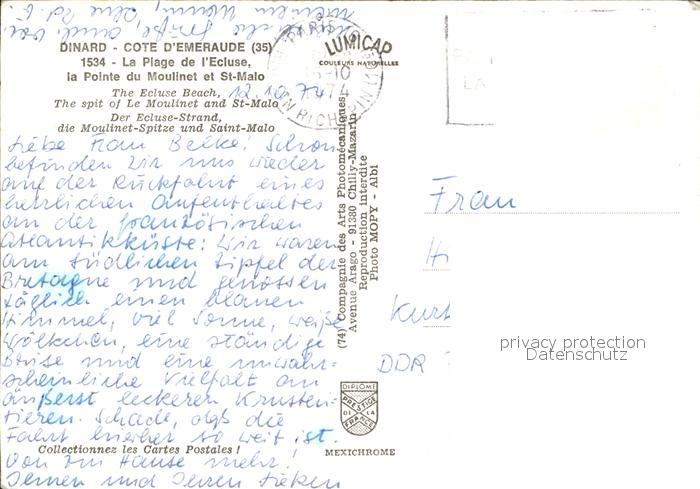 12501075 carte postale Dinard 35 Plage Ecluse Pointe Moulinet St-Malo postalisch gelaufen Erhaltung siehe scans KatCode: 11170035435093