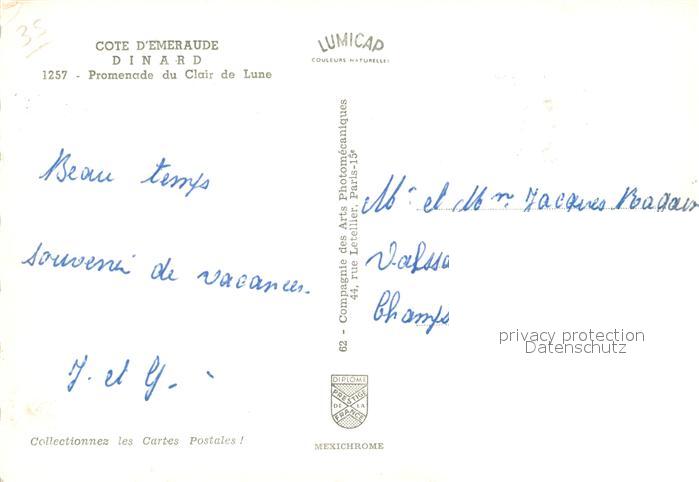 13593961 Dinard 35 Promenade du Clair de Lune postalisch gelaufen Erhaltung siehe scans [WerneD78] carte postale Wern Katcode 11170035435093