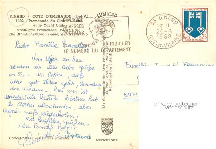 13778792 Dinard 35 Promenade du Clair de Lune et le Yacht Club postalisch gelaufen Erhaltung siehe scans [FriedD77] carte postale Frie Katcode 11170035435093