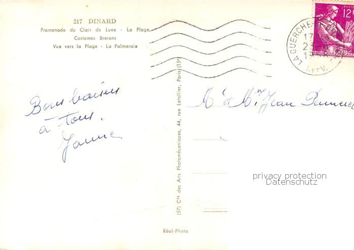 13800201 Dinard 35 Promenade du Clair de Lune La Plage Costumes Bretons Vue vers la Plage La Palmeraie postalisch gelaufen Erhaltung siehe scans [WerneD78] carte postale Wern Katcode 11170035435093