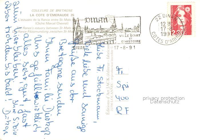 13060027 carte postale Dinard 35 Saint Malo Fliegeraufnahme postalisch gelaufen Erhaltung siehe scans [FriedD77] KatCode: 11170035435093