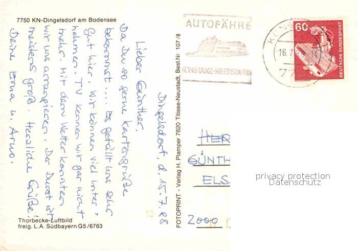 72835064 alte Postkarte Dingelsdorf Fliegeraufnahme postalisch gelaufen Erhaltung siehe scans [FriedD77] KatCode: 11110008335043