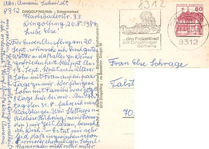 73890983 alte Postkarte Dingolfing Schwimmbad postalisch gelaufen Erhaltung siehe scans [FriedD77] KatCode: 11110009279112