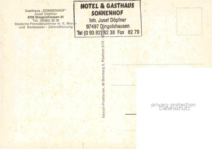 72757338 Dingolshausen Gasthaus Sonnenhof postalisch nicht gelaufen Erhaltung siehe scans [KathaD81] KatCode: 11110009678122