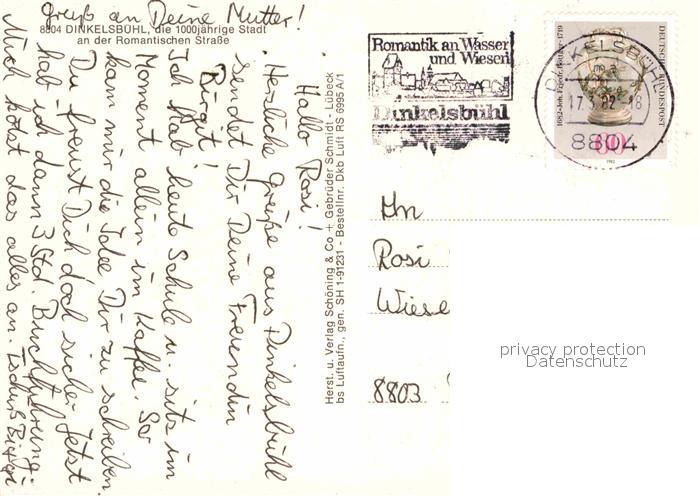 72617796 alte Postkarte Dinkelsbuehl 1000jaehrige Stadt an der Romantischen Strasse Fliegeraufnahme postalisch gelaufen Erhaltung siehe scans [FriedD77] KatCode: 11110009571136