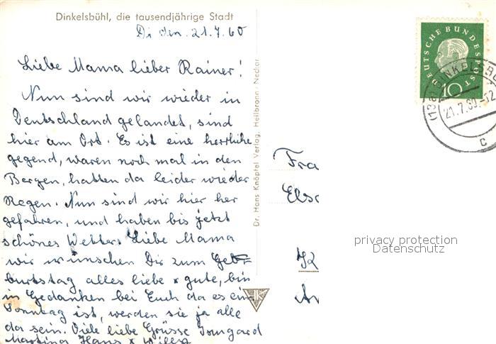 72952614 alte Postkarte Dinkelsbuehl 1000jaehrige Stadt Innenstadt Fachwerkhaeuser Brunnen Teich Turm Festumzug Musikkapelle postalisch gelaufen Erhaltung siehe scans [FriedD77] KatCode: 11110009571136
