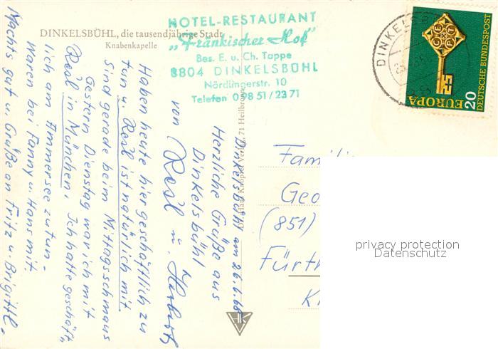 73125381 alte Postkarte Dinkelsbuehl 1000jaehrige Stadt Knabenkapelle postalisch gelaufen Erhaltung siehe scans [FriedD77] KatCode: 11110009571136