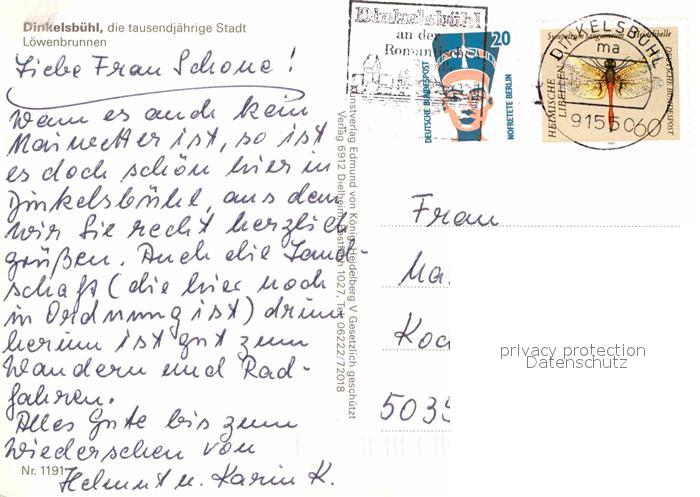 72721023 alte Postkarte Dinkelsbuehl 1000jaehrige Stadt Loewenbrunnen Altstadt postalisch gelaufen Erhaltung siehe scans [FriedD77] KatCode: 11110009571136