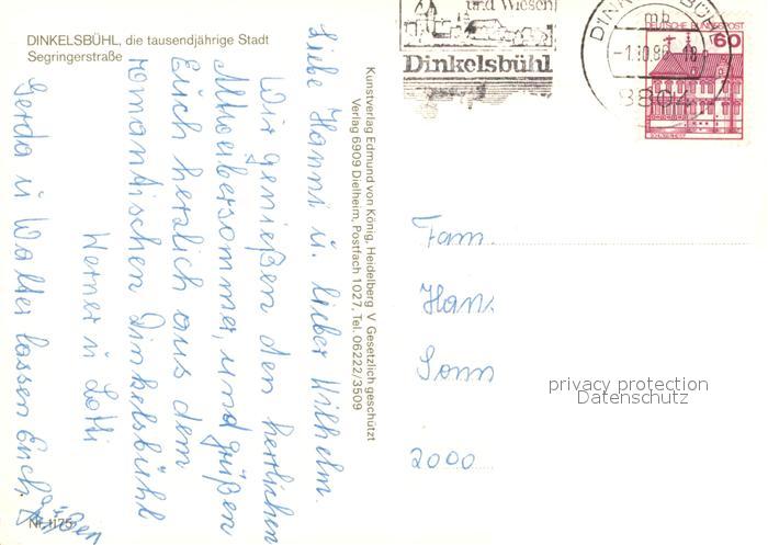 73125376 alte Postkarte Dinkelsbuehl 1000jaehrige Stadt Segringerstrasse Innenstadt Kirche postalisch gelaufen Erhaltung siehe scans [FriedD77] KatCode: 11110009571136