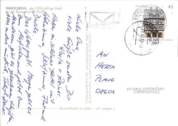 72381995 alte Postkarte Dinkelsbuehl postalisch gelaufen Erhaltung siehe scans KatCode: 11110009571136