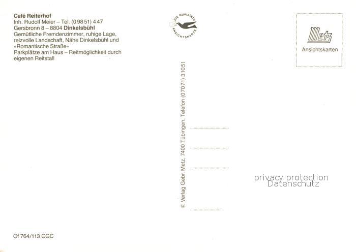 73569748 Dinkelsbuehl Cafe Reiterhof postalisch nicht gelaufen Erhaltung siehe scans [PaolaD17] KatCode: 11110009571136