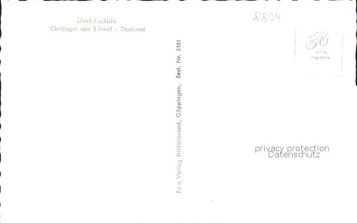 71930108 Dinkelsbuehl Christoph von Schmid Denkmal postalisch nicht gelaufen Erhaltung siehe scans KatCode: 11110009571136