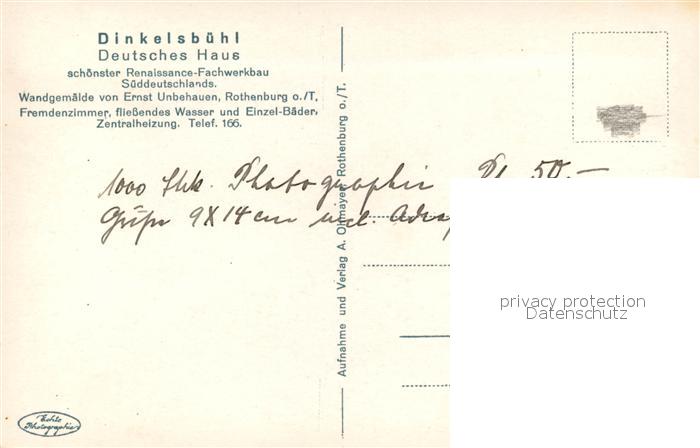 73301478 Dinkelsbuehl Deutsches Haus postalisch nicht gelaufen Erhaltung siehe scans [PaolaD17] KatCode: 11110009571136