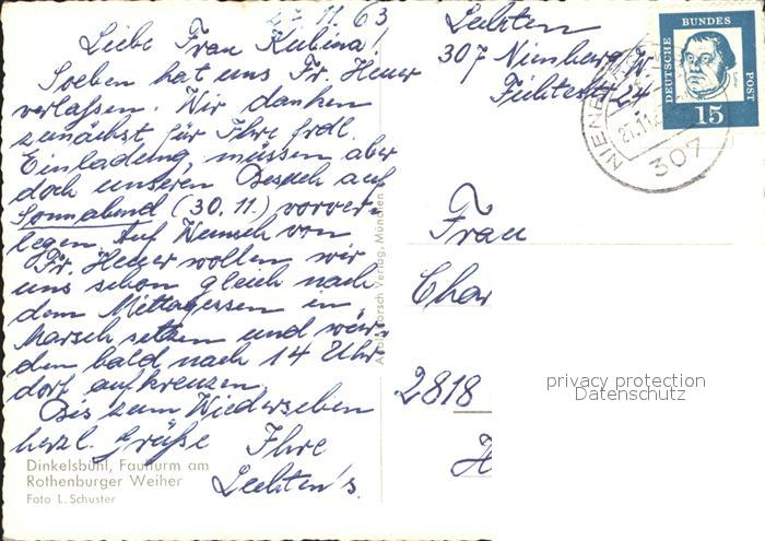 72094708 alte Postkarte Dinkelsbuehl Faulturm Rothenburger Weiher postalisch gelaufen Erhaltung siehe scans KatCode: 11110009571136