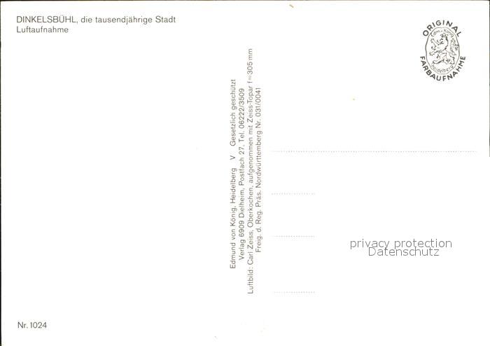 72469333 Dinkelsbuehl Fliegeraufnahme postalisch nicht gelaufen Erhaltung siehe scans KatCode: 11110009571136