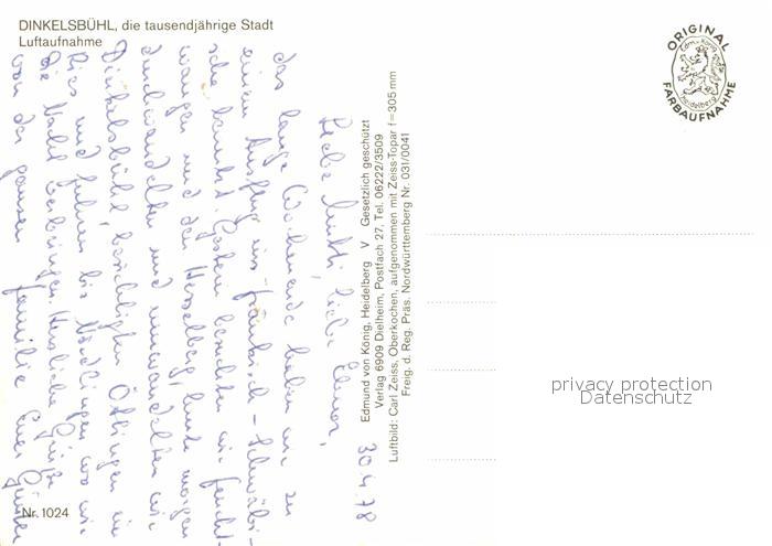 72725720 Dinkelsbuehl Fliegeraufnahme tausendjaehrige Stadt postalisch nicht gelaufen Erhaltung siehe scans [LiesaD40] KatCode: 11110009571136
