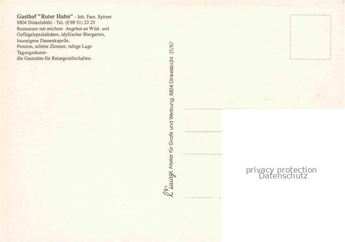 74110919 DINKELSBueHL Gasthof Roter Hahn postalisch nicht gelaufen Erhaltung siehe scans [WerneD78] Wern Katcode 11110009571136