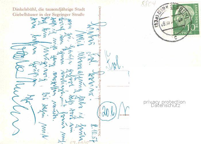 72910923 alte Postkarte Dinkelsbuehl Giebelhaeuser Segringer Strasse Kuenstlerkarte postalisch gelaufen Erhaltung siehe scans [FriedD77] KatCode: 11110009571136