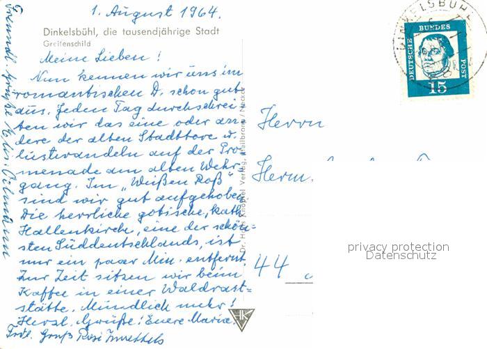 72812755 alte Postkarte Dinkelsbuehl Greifenschild 1000jaehrige Stadt postalisch gelaufen Erhaltung siehe scans [FriedD77] KatCode: 11110009571136
