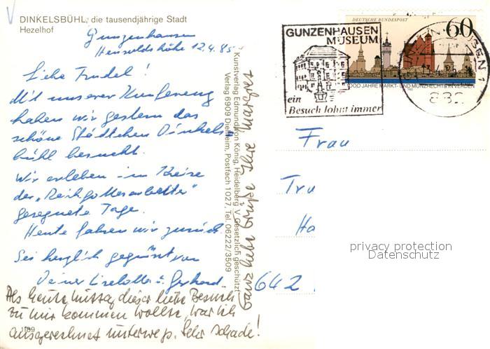 73000891 alte Postkarte Dinkelsbuehl Hezelhof postalisch gelaufen Erhaltung siehe scans [AndreD76] KatCode: 11110009571136