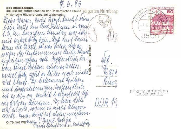 72890685 alte Postkarte Dinkelsbuehl Historische Haeusergruppe am Weinmarkt postalisch gelaufen Erhaltung siehe scans [WerneD78] KatCode: 11110009571136