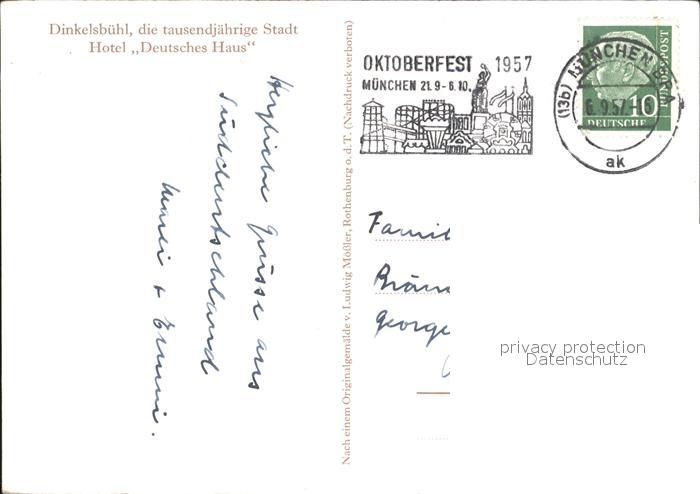 72369264 alte Postkarte Dinkelsbuehl Hotel Deutsches Haus postalisch gelaufen Erhaltung siehe scans KatCode: 11110009571136