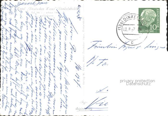 72316235 alte Postkarte Dinkelsbuehl Hotel Deutsches Haus postalisch gelaufen Erhaltung siehe scans KatCode: 11110009571136